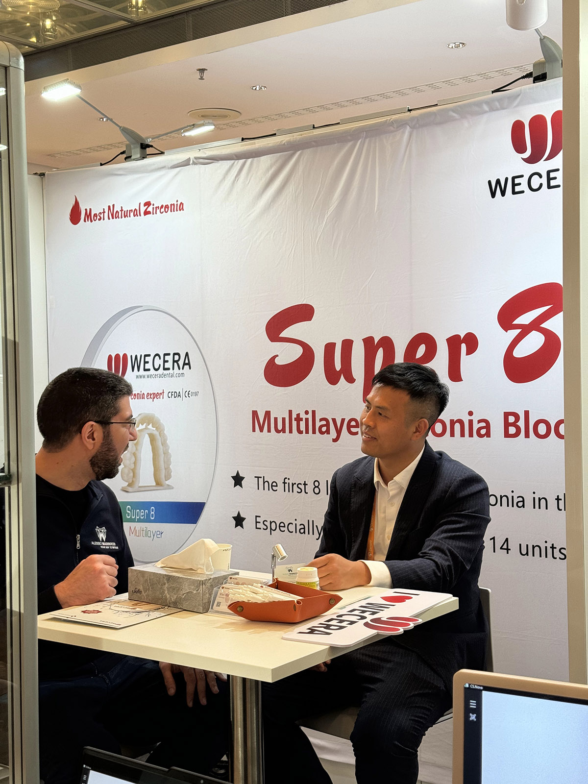 We had the privilege of meeting so many passionate dental professionals at Booth M38a. From live discussions about Super8 – the first 8‑layer multilayer zirconia on the market – to sharing insights on seamless esthetics, high translucency (57%), and the strength needed for full‑arch restorations (1200 MPa) – it was all about pushing boundaries together.